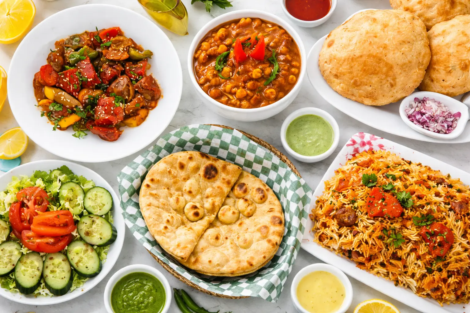 Chickpeas with 2 deep-fried bread and Indian spices, served with sweet dish, cumin potatoes, and pickle. A classic North Indian comfort dish that's beloved across Punjab and a must-try at Kirat Dhaba in Winnipeg.